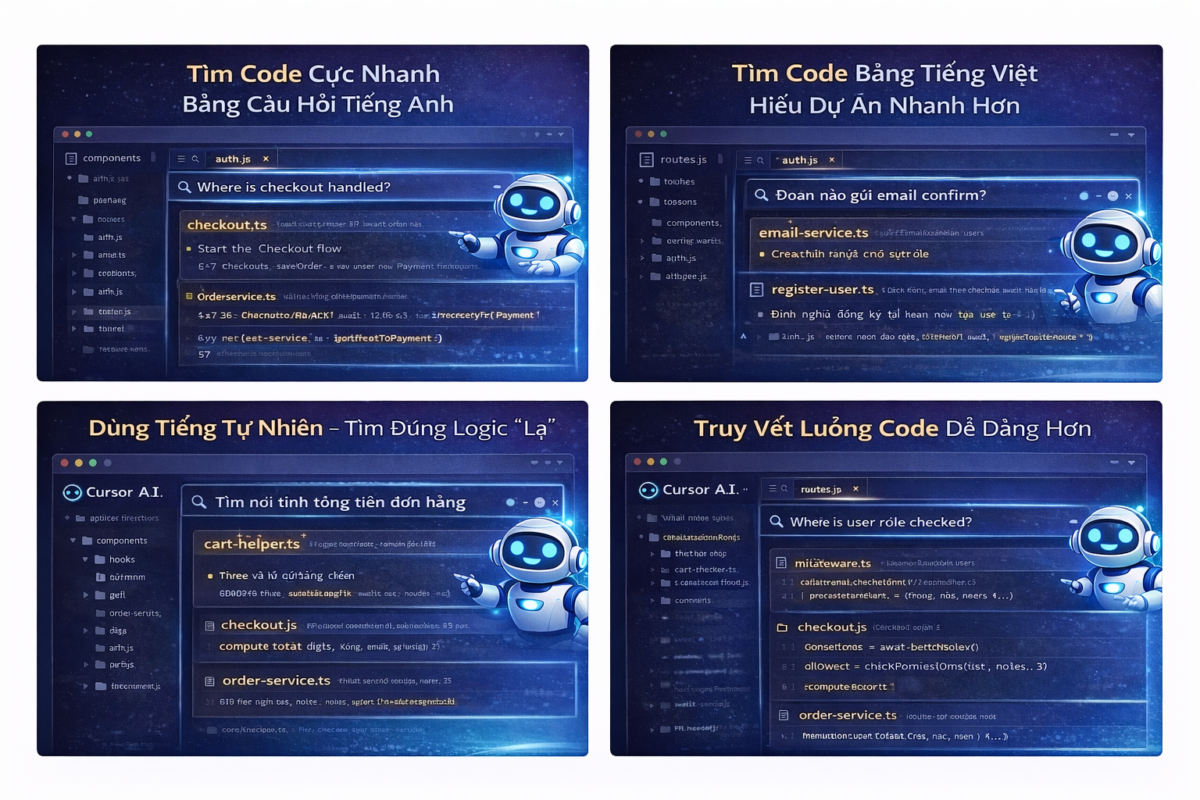 Nói cách khác, Cursor không tìm bằng keyword, mà tìm bằng ngữ nghĩa (semantic).